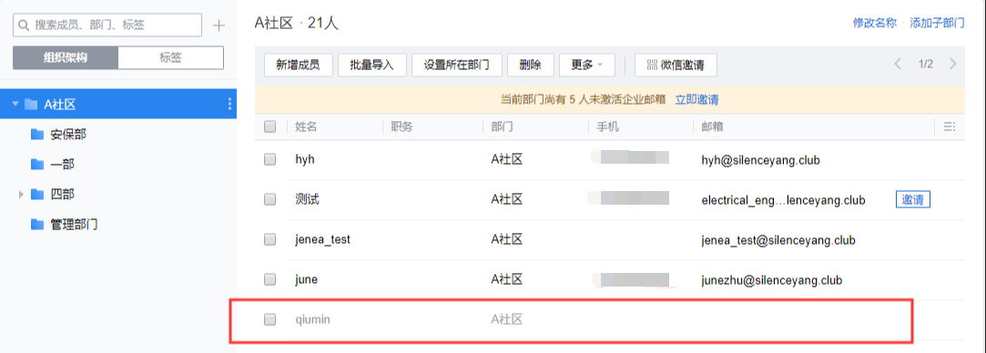 对于未绑定微信/手机的成员,管理员可以通过修改密码的方式,把邮箱分配给其他成员使用。详情查看 管理员如何修改成员密码?