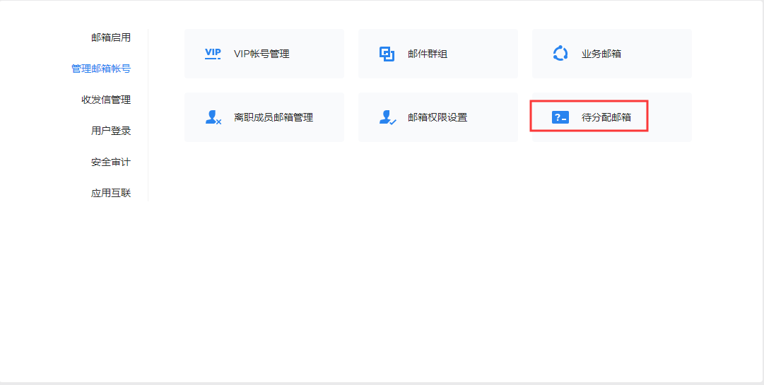 3、解绑,被解绑的邮箱进入了管理工具-管理邮箱帐号-待分配邮箱。点击分配,可以输入手机号或激活码作为邮箱的激活方式,详情可查看如何通过激活码邀请成员加入?